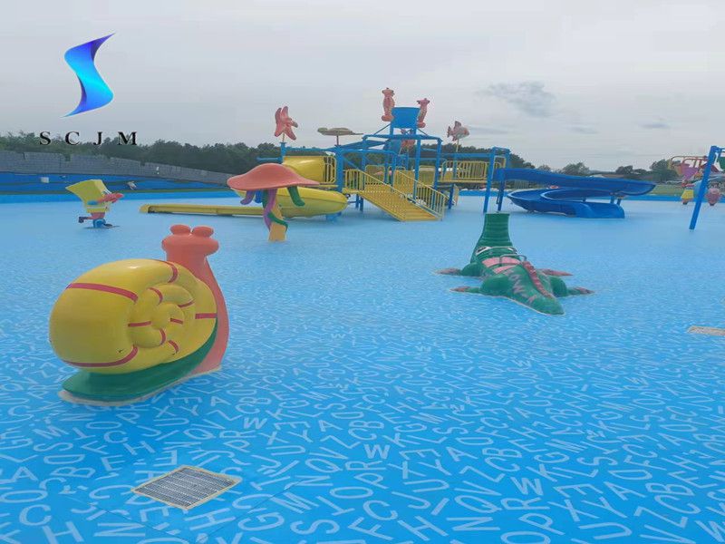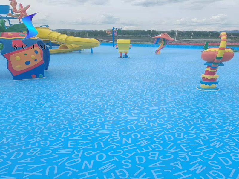 本項(xiàng)目位于內(nèi)蒙古自治區(qū),為室外戲水池項(xiàng)目,也就是水上樂(lè)園項(xiàng)目,基礎(chǔ)面為水泥收光面,采用滿刮膠搭邊熱熔焊接工藝,選擇1.5mm字母圖案游泳池防水膠膜為材料,進(jìn)行鋪設(shè)安裝,整體效果如下: